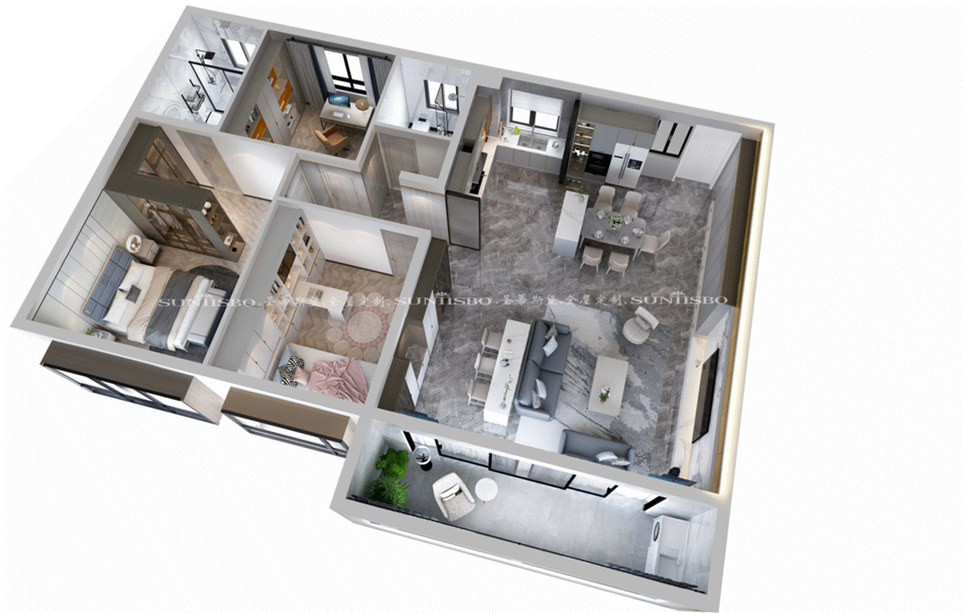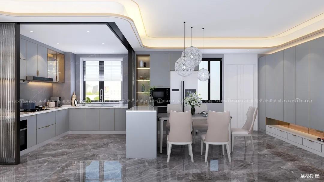 藏是漏的基础。在社交软件流行的当下,亲情之间也逐渐越来越远,推演到空间,餐厨之间需要的不再是实墙的阻隔,而是用长虹玻璃代替,开合之间,他的认真,你的可爱,都能在不经意间尽收眼底。